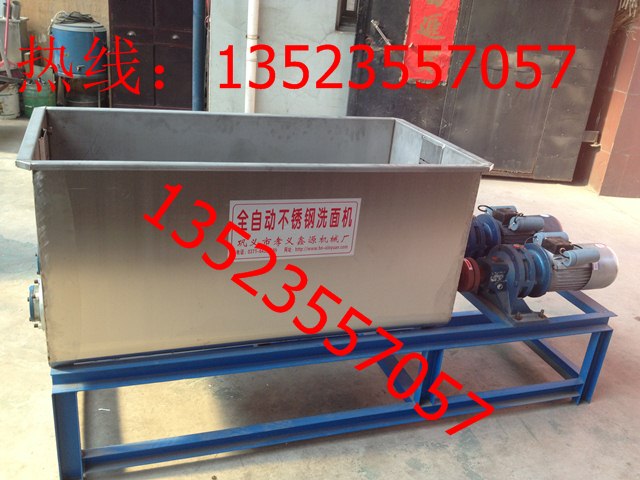 全自動洗面機:洗面機是配備涼皮機和搟面皮機使用的,通過自動洗面機的和面洗面,然后用沉淀和發(fā)酵的面漿來加工生產(chǎn)涼皮和搟面皮的,洗面機是雙螺旋的洗面機,是陶瓷水封不漏水的洗面機,是雙電機雙減速機的洗面機,洗面機速度快效率高,操作簡單,使用方便等特點。